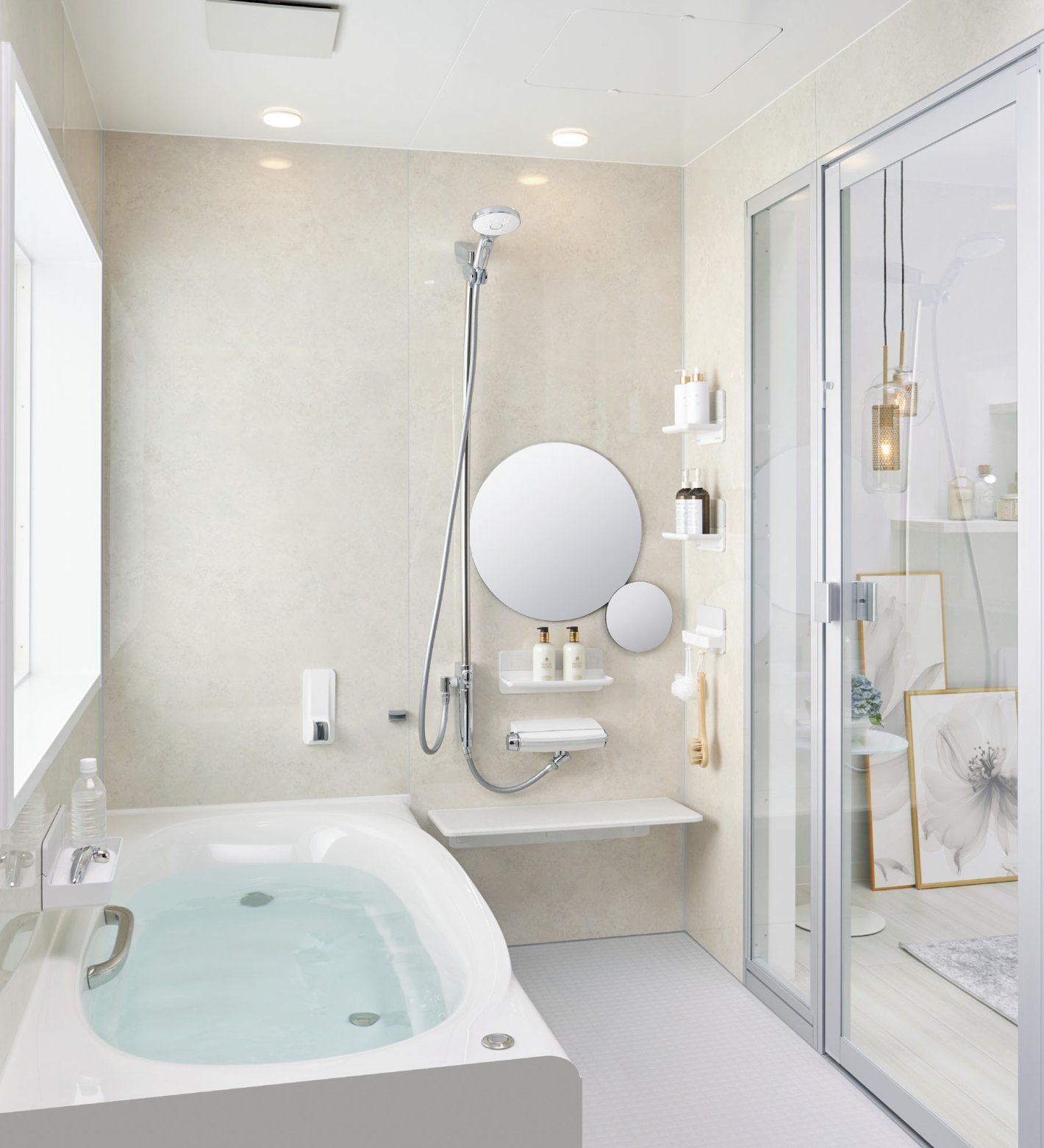 ホコリや汚れがたまりやすい浴室ドア下部をタテ枠に埋め込む設計とし、掃除の手間を軽減。浴室側のパッキンをなくすことで段差も小さくなり、カビが発生しにくく、より清掃しやすいスッキリ設計です。